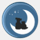 pegatinas de personalizable para amantes de los animales con un lindo ilustracion de siluetas negras de gato y perro sentados juntos en la luna, observando las estrellas. Puede personalizar estos pegatinas con texto personalizado. El diseño también está disponible en otros productos.