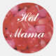 Esta hoja pegatina muestra un fondo de corazones de chicle rosados y rojos y presenta el texto "Mamá caliente".