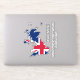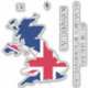 Pegatina de esquema del mapa del pabellón del Reino Unido en el esbozo del mapa del Reino Unido. El mapa está infundido con el patrón y los colores de la bandera nacional del Reino Unido. También se incluyen pequeños pegatinas con el nombre del país. El pegatina de mapas del Reino Unido es el regalo perfecto y pegajoso que se puede colocar en cualquier lugar que desee. © 2022 CountriesOfTheWorld