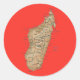 Un mapa de Madagascar se centra sobre un fondo de color de la bandera en este pegatina. ¡Apúntate a los valores malgaches!