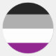 Insignia con la bandera asexual en ella, elegida por varias comunidades asexuales. El negro es para los asexuales, el gris es para los demisexuales y los canas, el blanco es para la sexualidad (en su mayoría aliados pero también como parte del espectro) y el morado es para la comunidad.