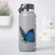 Este pegatina tiene una mariposa azul. Es una excelente manera de agregar un toque de naturaleza a tu laptop, botella de agua u otra superficie lisa.