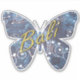 pegatina vinílico cortado por personalizados con una imagen de una mariposa azul estrery-noche de batik con "Bali" impreso en su escritura dorada. Ver toda la colección de Pegatinas de Bali Retreat en INVITES | Sección Pegatinas y etiquetas. Este producto no está asociado ni afiliado al titular del derecho de autor original.