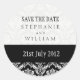 Pegatina de boda de monograma de damasco blanco y negro que puede utilizarse como sello de invitación o en favores de boda. Personalizable completo.