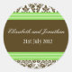 Pegatina de boda de damasco verde y marrón que puede utilizarse como sello de invitación.