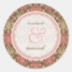 Pegatina de matrimonio elegante de encaje rosado d