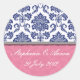 Pegatina de matrimonio Royal Blue and Pink Damask