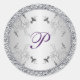 Pegatina de monograma floral morado y Relieve meta