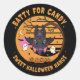 Añade un toque caprichoso a tu Halloween con este adorable pegatina de ‘Batty for Candy’! Con un amigo murciélago negro personalizado vestido con un gorra de brujas y una capa púrpura, colgando boca abajo de una rama de árbol, con tres pequeñas calabazas debajo y dos lindos fantasmas en los lados. El fondo muestra una cálida puesta de sol/amanecer con una luna creciente. Perfecto para decorar cuadernos, laptops, bolsos de regalo o como regalo para los amantes de Halloween. Divertido, festivo y amigable con los niños, este pegatina trae dulce vibración de Halloween dondequiera que la pegues.