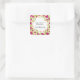 Un pegatina de planchas florales. Es un pegatina colocar un libro con el nombre del propietario en un círculo blanco rodeado de flores rosas y naranjas oscuras sobre un fondo blanco.