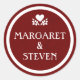 Pegatina de nombres de círculo de Boda rojo y blanco marrón