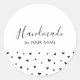 Este moderno pegatina de paquetes hechos a mano y caseros presenta un lindo patrón cardíaco con texto personalizado. Puede personalizar el texto con la información de su empresa. Este sencillo pegatina le añadirá un toque especial a su envase de producto.