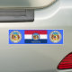Pegatina de parachoques de Missouri. Esta pegatina de parachoques azul está decorada con la bandera del estado de Misuri que lleva entre corchetes el sello de Missouri. Una gran idea de regalo.