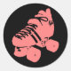 Viejo patinador roller de color rosa oscuro derby sobre el pegatina de fondo negro.