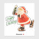pegatina de vinilo cortado por personalizados con una imagen vintage del viejo y alegre St. Nick patinando a través del hielo mientras cargaba un árbol siempre verde coronado con una estrella de oro y un sentimiento festivo. Ver pegatina cuadrado, tarjeta de saludo, confeti, etiqueta de regalo y papel de envoltura. Ver toda la colección de Pegatinas de vacaciones en INVITES | Sección Pegatinas y etiquetas.