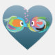 Dos amorosos peces tropicales se besan mientras las burbujas en forma de corazón suben a la superficie.
