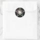 Un pentagrama con una luna brillante en su interior sobre un fondo negro. Brillando con una mística luz rojiza.