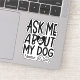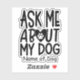 El pegatina de "Pregúntame por mi perro" seguramente iniciará una conversación sobre su perro. Personaliza esta taza con el nombre de tu perro. Coloque el pegatina en un portátil, tablet, portátil, espejo, teléfono, botella de agua, asiento, ventana del vehículo, refrigerador o cualquier superficie lisa.