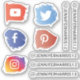 Difundan la voz y promuevan su presencia en los medios sociales con nuestros personalizados pegatinas en medios sociales. Diseño caracterizado por Instagram, facebook, twitter, pinterest, el ícono de tubo y los nombres de usuario.
