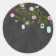 Pegatina de pizarra con flores rosas y Mason Jar