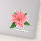 pegatina vinílico cortado en personalizado con una imagen de una hermosa poinsettia rosa con cuatro hojas verdes. Texto opcional. Consulte confección, etiqueta de favor y papel de envoltura correspondiente. Ver toda la colección de Pegatinas de vacaciones en INVITES | sección Pegatinas.