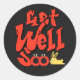 Un pegatina vibrante y lúdico diseñado para alegrar el día de alguien cuando se siente bajo el clima. El pegatina presenta las palabras "Ponte bien pronto" en negritas letras naranjas sobre un fondo circular negro, acompañado por un lindo conejito personalizado amarillo y un pulpo rojo con ojos grandes. El diseño seguramente traerá una sonrisa a la cara del receptor y dará un gesto reflexivo de apoyo durante su recuperación.