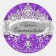 Pegatina de Quinceanera de Purple Tiara y Damask