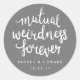 Un diseño simple que dice "rareza mutua para siempre" con letras blancas en un fondo gris. Puede cambiar el color del fondo a cualquier cosa que desee que coincida con el esquema de color. Debajo, puede escribir los nombres y la fecha del boda o un pequeño mensaje de agradecimiento. Esto sería perfecto como un toque final en sus invitaciones de boda o para cualquier celebración de aniversario.