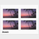Pegatina fotográfico rectangular de un cielo rosa y morado durante una puesta de sol en una playa con palmeras de silueta negra en la isla tropical de Maui, Hawaii.