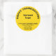 Pegatina de Acción de Gracias para saludar a sus clientes. Pegatina que puede usar como material de marketing para promocionar su negocio y promocionar su marca. Pegatina con el saludo de agradecimiento y con su nombre de negocio para crear conciencia de marca. También puede utilizarlo como etiqueta de producto esta temporada de acción de gracias. La forma pegatina es redonda y el color es amarillo. El color de fuente es negro. Para personalizar de este pegatina, cargue el logotipo de su empresa, escriba el nombre de su empresa o empresa, la dirección y el número de teléfono y compruebe la apariencia. Si la apariencia le resulta agradable, puede realizar su pedido ahora. Si necesita cambiar el tamaño y mover el logotipo y los textos para que encajen en este pegatina o en otras formas y tamaños que elija, cambie la herramienta de diseño. También puede realizar otros cambios de acuerdo con sus preferencias en la herramienta de diseño, como cambiar el color pegatina, el color del tipo de letra y el estilo del tipo de letra. ¡Feliz Día de Acción de Gracias!