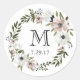 Bonito pegatina redondo floral. ¡Personalizable. Parte de una colección de bodas.