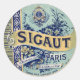 Utilice estos pegatinas verde azulados y dorados ornamentados como un toque especial para su proyecto de diario de negocios o basura o para transformar una botella antigua para hacerla aún más vintage. Diseño floral verde azulado, azul y dorado con pancartas que dicen "Sigaut Paris" "15 medallas de oro" y "15 diplomas".
