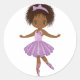 Esta bailarina de pegatina redonda afroamericana es de color púrpura claro y oscuro. El pegatina está diseñado con la adorable bailarina chica afroamericana.