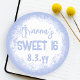 ¡Personaliza tu propia pegatina de fiesta azul claro para tu fiesta de cumpleaños Sweet 16! El desvanecimiento blanco es atractivo con tus fuentes azules. ¡Utiliza esta etiqueta de cumpleaños azul y blanca personalizada para sobres o bolsas de regalo de sweet sixteen! Perfecto para temas de color azul claro, azul cielo, azul bebé.