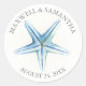 Pegatinas de Starfish Beach Wedding personalizados con nombres de novias y novios y fecha de boda presentan una réplica de mi arte acuarela original en tonos azules. Estacionamiento de Ocean, Invitaciones a duchas de novias, Guardar las tarjetas de fecha, Tarjetas de solicitud de dama de honor, Tarjetas de agradecimiento y otros productos de regalo de Boda y Boda disponibles. Visita www.zazzle.com/dotellabelle para verlos a todos.