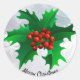 Pegatina De Sello Verde Y Rojo Sobre Holly navidad