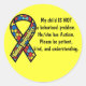 Este pegatina es dejar que las personas que no conocen a su hijo con autismo expliquen su comportamiento cuando no están allí. Los padres del niño que enseño con autismo pusieron a este pegatina en su caja de almuerzo, mochila y una en su camisa todos los días.