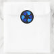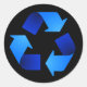 Pegatina negro con un símbolo de reciclaje azul brillante.