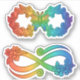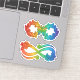 El paquete de 2 pegatinas incluye el signo del infinito arcoiris, adornado con flores, hojas, una vid y mariposa. El espectro completo de colores representa la diversidad del espectro de autismo así como el mayor movimiento de neurodiversidad.