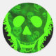 Cuidado con los espectros del cráneo. Cuando los fantasmas cráneos aparecen de la niebla giratoria es mejor que corras... ¡antes de que sea demasiado tarde! Pegatina con un diseño de personalizable verde y negro para que añada sus propias imágenes, textos e ideas. Obra de arte original creada con técnicas digitales por Jess Perry.
