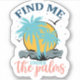 Pegatina de Summer Vibes, Encuéntrame debajo de las palmas. Diseño de vibraciones de verano con colores tranquilizadores. Coloque el pegatina en un portátil, tablet, portátil, espejo, teléfono, botella de agua, asiento, ventana del vehículo, refrigerador o cualquier superficie lisa.
