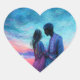 Pegatinas con mi pintura digital original impresa. El cuadro representa a una hermosa pareja enamorada, con una puesta de sol tranquila en tonos rosa, azul y violeta.