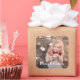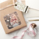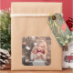 Feliz guión de broche blanco navideño un pegatina de tipografía fotográfica.