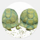 Esta fotografía alterada muestra dos tortugas colgando juntas. Las conchas de tortuga tienen varios tonos verdes y hay pequeñas piedras diseminadas por ellas. Las piedras van de verde a marrón.