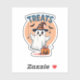 ¡Este encantador pegatina es la manera perfecta de celebrar la espeluznante temporada! Presenta un fantasma adorable que lleva puesto a un gorra de brujas, rodeado de murciélagos y arañas, y sostiene un balde de calabaza repleto de dulces. Con la palabra "TRATAMIENTOS" arriba, este diseño es ideal para portátiles, laptops, o para añadir un toque festivo a los regalos y favores de fiesta.