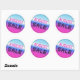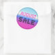 Pegatina redondo de venta de agosto con gradiente holográfico brillante, color rosa brillante y fuente punteada negra