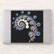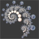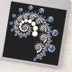 Espirales de marfil y perlas azules en una espiral sobre un fondo negro.