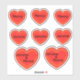 Rojo, corazones tridimensionales con nombres. Tres corazones pequeños con un primer nombre, tres pequeños con un segundo nombre. Dos grandes corazones combinan los dos nombres con "&"