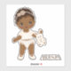 Esta linda pegatina de bebé afro está en tonos beige pastel, marfil y marrón. El pegatina está diseñado con una linda y rizada bebé afroamericana. La niña vistiendo un boho traje de cuerpo pastel con un cordón de encaje y una cabecera floral. El chica sostiene un juguete de conejito. También puede personalizar el nombre.