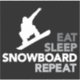Repite la tabla de snowboard. Tipo de negrita blanco y gris sobre un fondo negro sólido. Snowboard de silueta blanca.